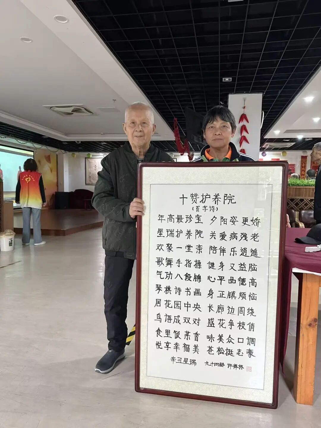 尤其是许爷爷亲笔写的作品《十赞护养院》,更是得到了大家的一致赞扬。
