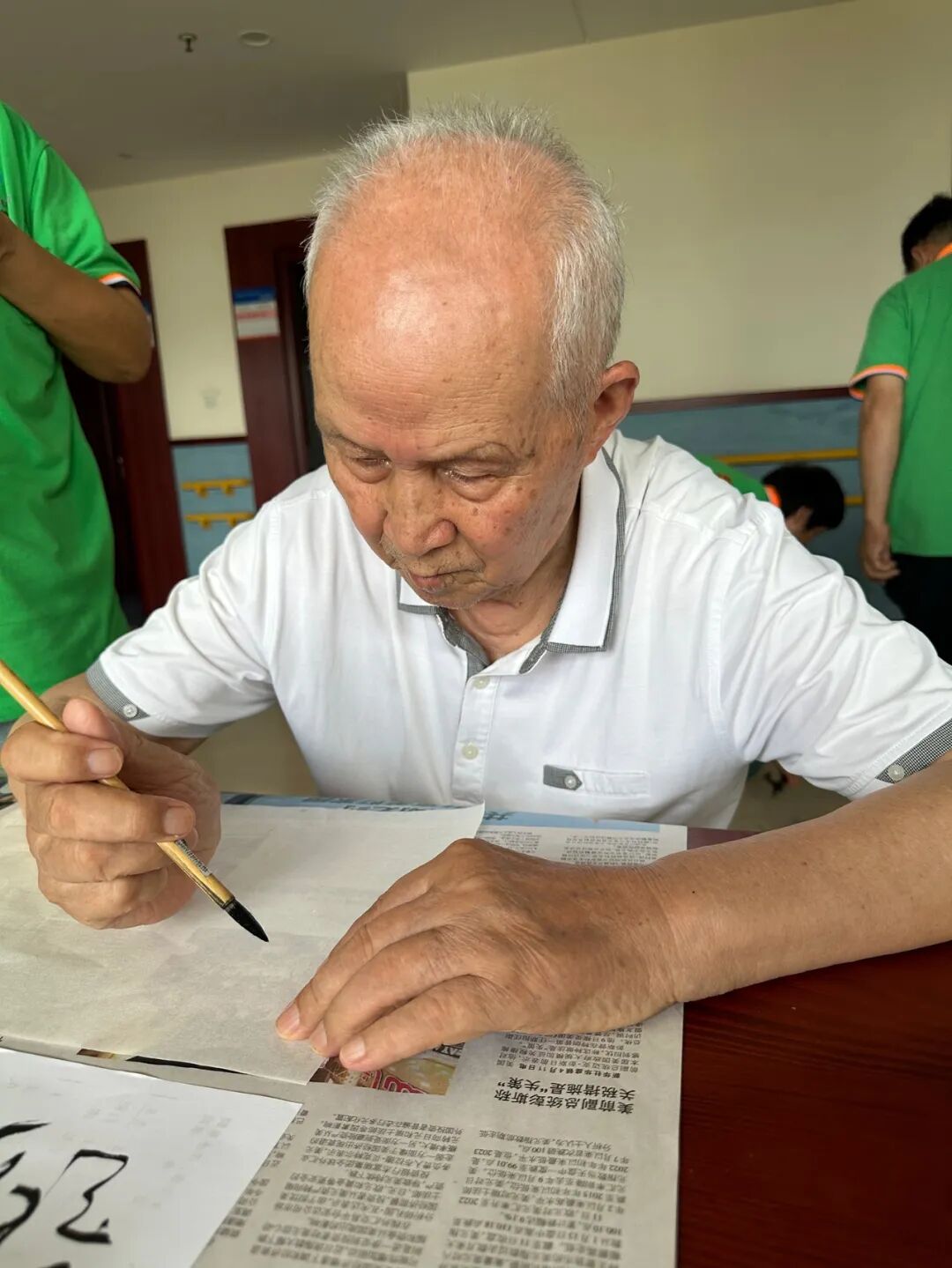 在许爷爷的牵头下,星瑞护养院成立了“银发合唱团”“老小孩乐队”。只要有长者表演,爷爷都带头报名,表演节目:京剧清唱、电子琴弹奏、歌曲联唱等。许爷爷还经常字斟句酌的写一些作品,赠送给护养院以及工作人员。
