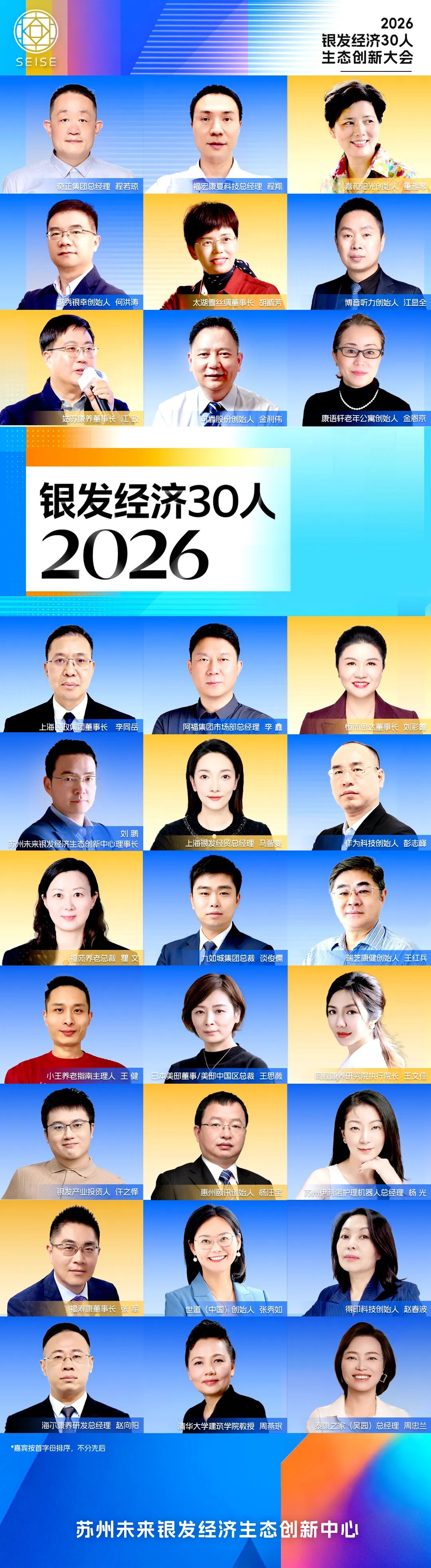 银发经济的高质量发展事关每个家庭和个人。在国家积极应对人口老龄化战略的背景下,银发经济作为连接民生福祉与经济增长的重要领域,正面临全球老龄化加速与国内未富先老叠加的复杂挑战。业态多元但效率不高、产品服务质量有待提升等问题,亟需通过生态化、协同化、数智化的思路破解。为此,2026银发经济30人生态创新大会在苏州隆重举办,旨在推动银发经济从被动应对人口负债向主动开发长寿红利转型。