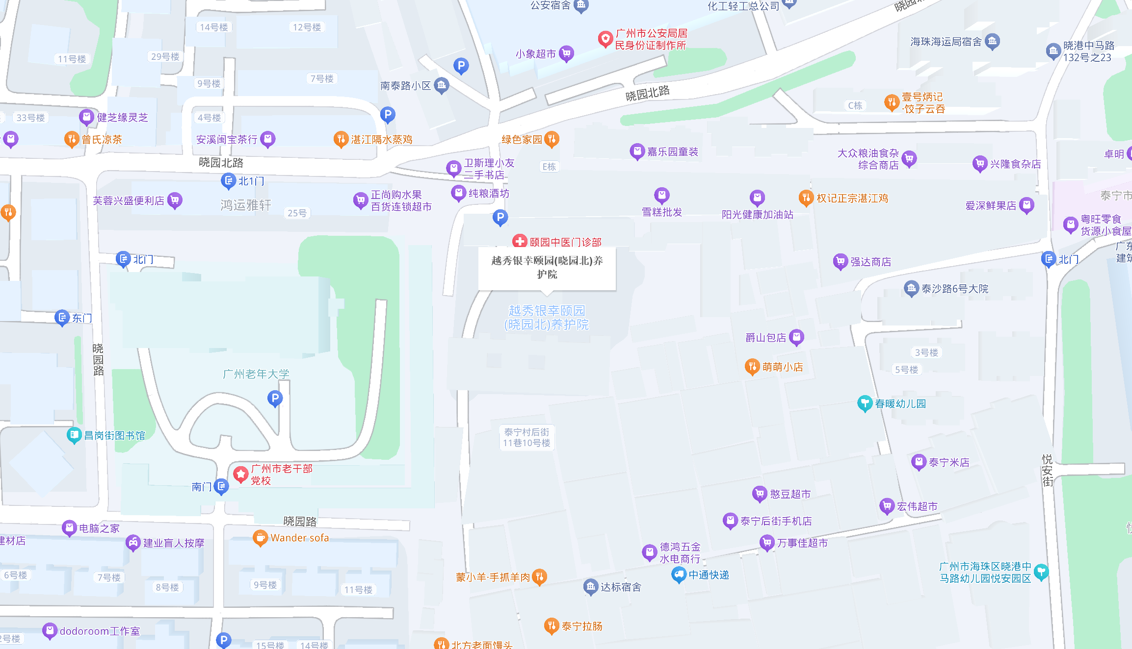 医院地址:广州市海珠区晓港中马路132号-2,银幸颐园养护院内